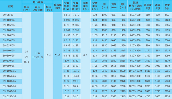 35kV級(jí)50-3150kVA雙繞組無勵(lì)磁調(diào)壓變壓器